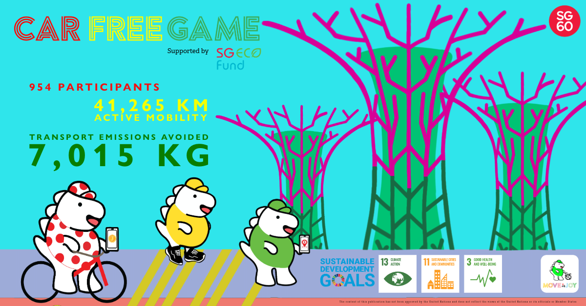 #CarFreeGame by MOVE&JOY is supported by SG Eco Fund and is part of Land Transport Authority's #WorldCar FreeDaySG. This initiative also supports United Nation's Sustainable Development Goals (SGDs) - mainly SDG 11 (Sustainable Cities and Communities), SDG 13 (Climate Action), and SDG 3 (Good Health and Well-being) by encouraging eco-friendly mobility and integrating sustainable practices into daily life.